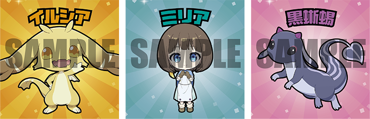 10月18日(土)、19日(日)に徳島県徳島市にて開催される「マチ★アソビ」会場内のしんまちボードウォーク「博報堂DY ミュージック&ピクチャーズ」パラソル(ブース)にて本作メインキャラクターのイルシア・ミリア・黒蜥蜴のSDイラストを使用した「TVアニメ『ドラたま』 キラキラ!ホログラムシール」3種をランダム配布決定!