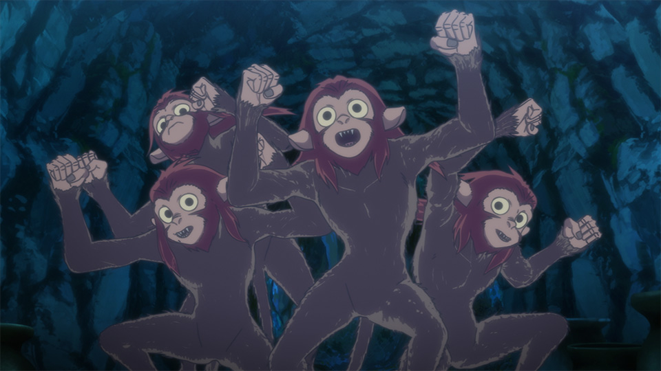 自分で作った干し肉をかけて、厄病子竜は大猩々と熱いバトルを繰り広げる。黒蜥蜴と猩々が見守る中、拳の応酬の末についに勝者が決定する…。